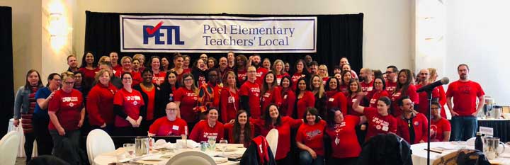 March 22: This is what #ETFOStrong looks like. More than 100 ETFO Peel stewards stand united & ready for the task ahead. ETFO Peel is “mobilizing and galvanizing our 7500+ members to fight for publicly-funded education.” (Photo thanks to ETFO Peel)