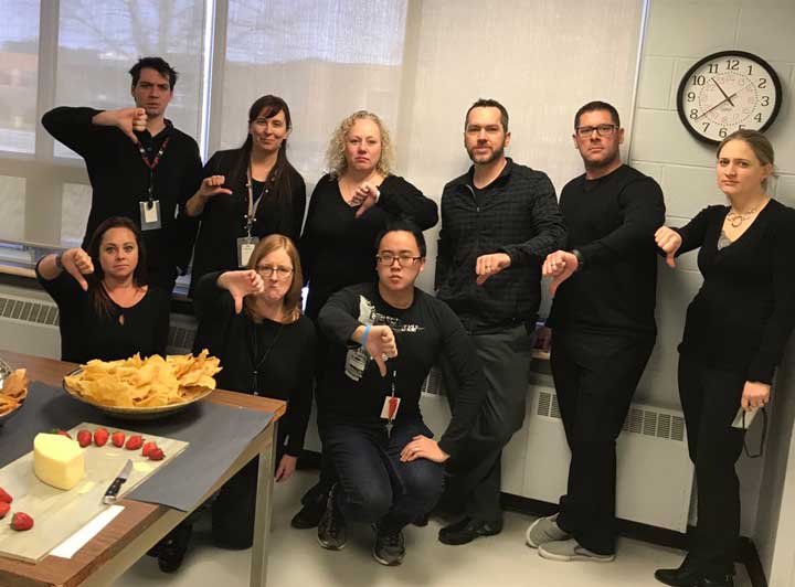 March 18: Renfrew County Teachers Local member Lisa Conway posted this photo of staff from the A J Charbonneau Elementary Public School in Arnprior expressing solidarity against education cuts.