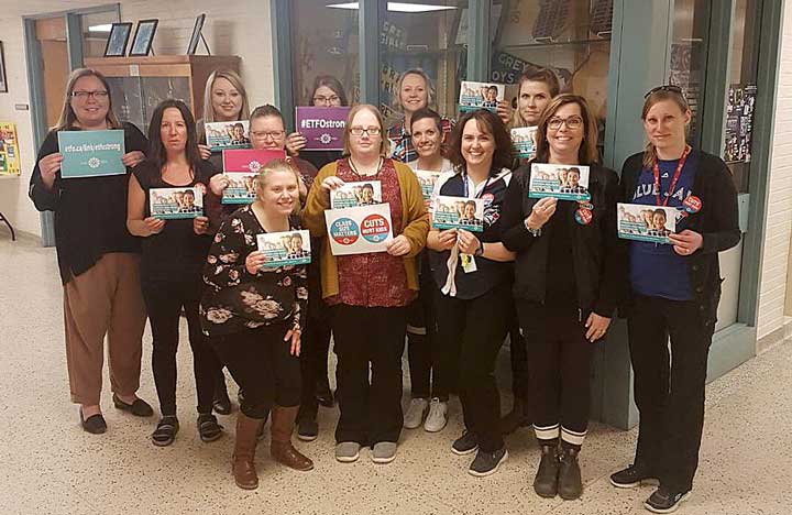 Stewards from ETFO’s Thames Valley Teacher Local are ready to defend public education. (Photo thanks to Karen Brown Campbell.)