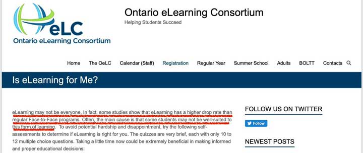 Before the Ford government announced e-learning would become a core part of education, the website of the Ontario eLearning Consortium said it “may not be [for] everyone.”