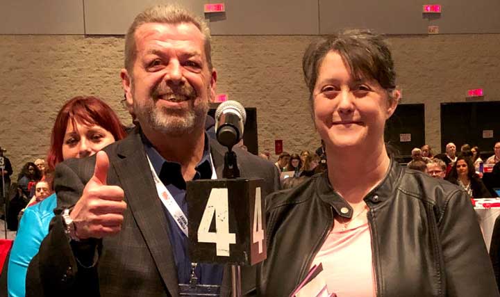 ETFO President Sam Hammond shows solidarity with Liz Stuart, president of the Ontario English Catholic Teachers’ Association at the Power of Many conference.
